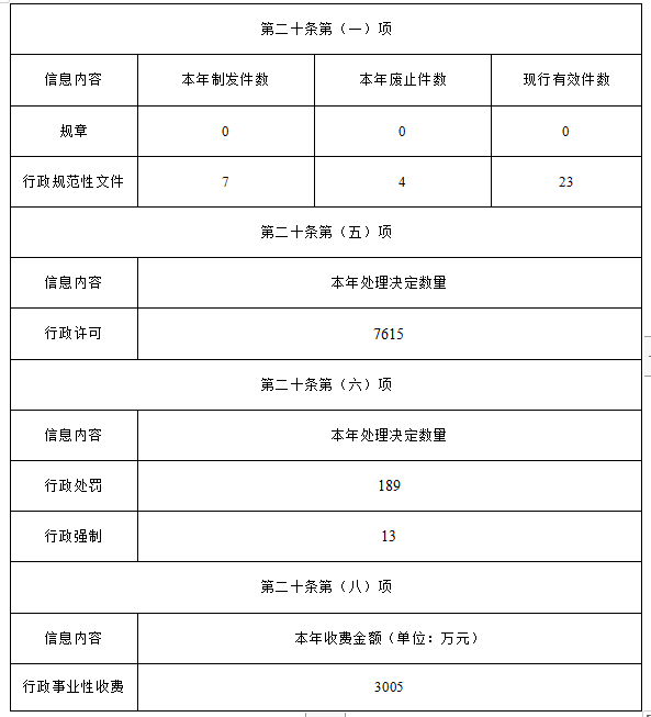 (三)政府信息管理情况。严格执行省局918博天堂管理办法等规定,进一步健全内容审核和信息发布审核机制,压紧压实各方审查责任,对拟公开的内容严格进行规范性审核和保密审查。持续动态更新、规范发布规范性文件及有关工作文件,进一步做好涉药品监管建议提案答复、规划、许可、部门预决算、行政执法等法定政府信息的主动公开工作。2023年,制发行政性规范文件7件,废止4件,现行有效23件。
